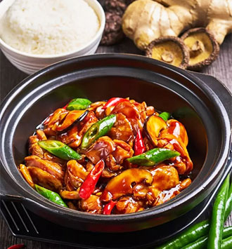 楊銘宇黃燜雞采用秘制醬料工藝技術(shù),雞肉精選鮮嫩雞腿肉,采集十種香料及調(diào)味品嚴(yán)格按比例調(diào)配,溶入各種名貴藥材精心烹制而成,用土質(zhì)砂鍋燒制,雞塊在砂鍋內(nèi)沸騰,雞塊滾燙,汁味和香味浸入雞肉內(nèi)部,烹飪出的黃燜雞嫩滑多汁,色澤均勻鮮嫩不粘膩,獨(dú)特的焦香味令人回味無(wú)窮。